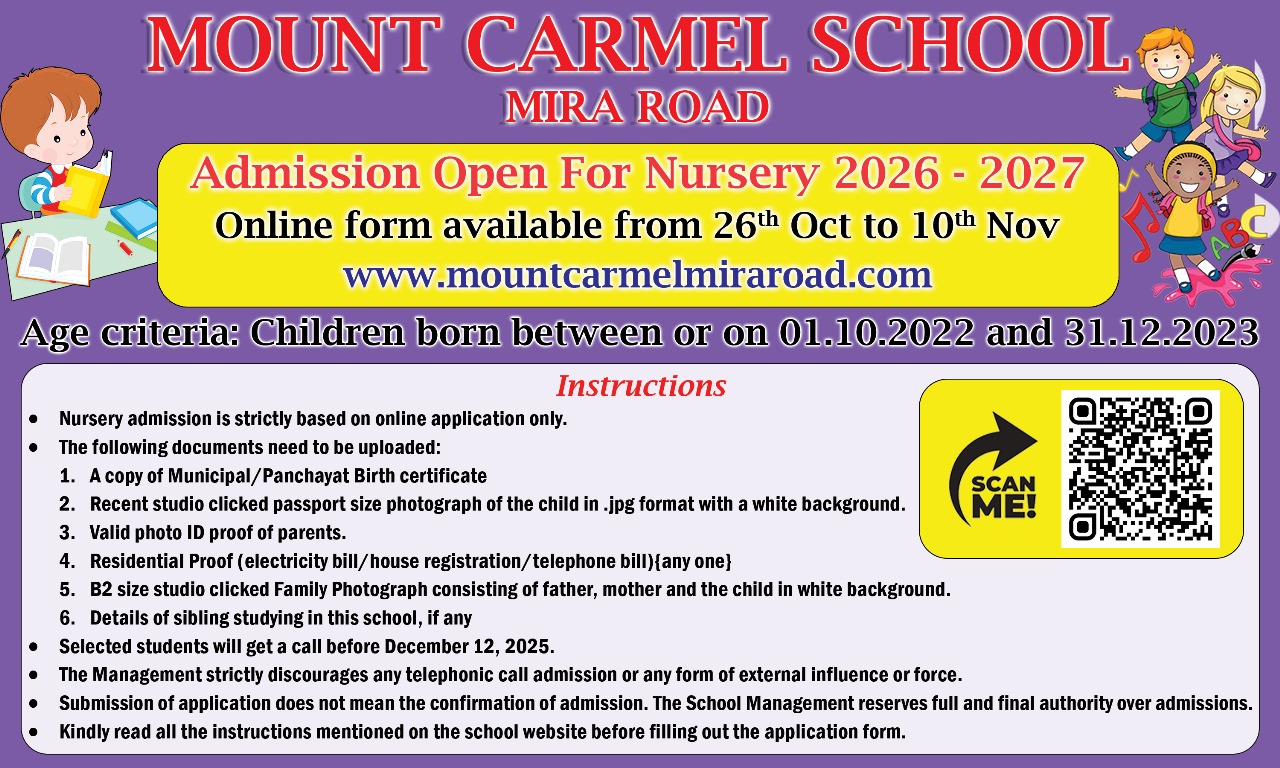 Welcome to Mount Carmel School, Mira road, where our students thrive in an environment of collaborative pride and achievements. Each day offers new opportunities, learning experiences, and unfolds new exciting challenges.