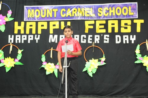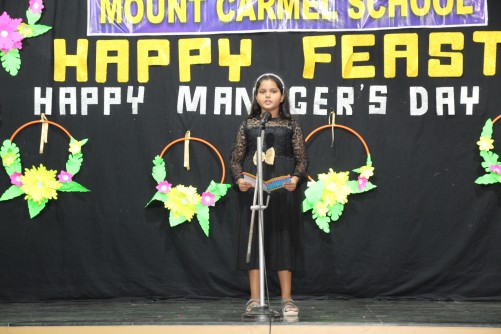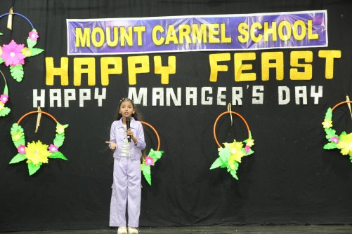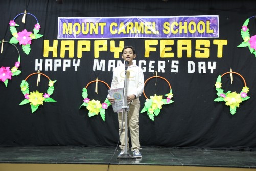 The Feast Day of our lady of Mount Carmel and the birthday of Fr. Regan DSouza, Manager of Mount Carmel School, were celebrated on 15th July 2025 in the St. Joseph Community Hall. The day began with a special Thanksgiving Mass for the entire Mount Carmel community at 7:15 am by our respected Frs. Avith and Jeswin. The primary section program began at 11a.m. Our Principals Fr. Nelson Cardoza and Fr. Pawan Saldanha along with Fr. Ashwin DSouza (Vice Principal) and Fr Regan Dsouza (Manager) were present for the program. The program began with welcoming the guests of honor and short prayer was said by Tr Alvira followed by a beautiful speech by student from grade 4. All the children sang the Happy Birthday song while Fr. Regan cut the cake and thereafter students presented birthday greeting cards. Fr Regan addressed the children and provided magical words for them to follow in their lives. Tr Loveena wished Father on behalf of entire Primary section with great words and appreciations. Students from grade 3 and 4 performed mesmerizing and energetic dances to embark the essence and joy of the feast day. Teachers of Primary section also added spice to the program by performing energetic dance. Fr Nelson later addressed children and the staff with short speech and inspiring words. Students who performed well in the SOF exam were also honored by the certificates and the medals. The vote of thanks was given by Tr Anjali Fernandes. The school anthem was sung by all the students to end the program.