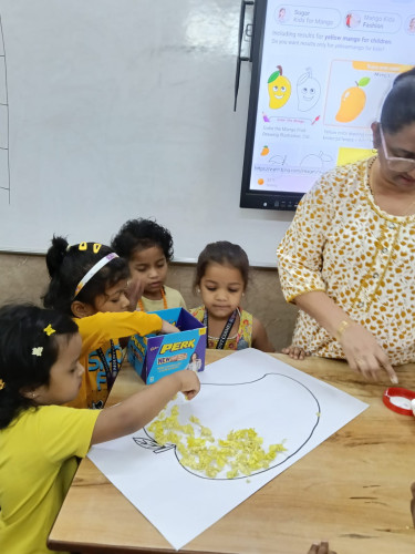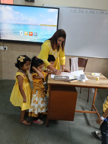Yellow Day was celebrated on 4th February 2026 (Wednesday) at Mount Carmel School during regular school hours. The celebration was organized to help children recognize and understand the colour yellow through engaging and enjoyable activities. Students were informed in advance to come dressed in yellow-coloured attire. The campus was filled with brightness as children appeared in various shades of yellow. Teachers also dressed in yellow, adding to the cheerful ambience of the event. A beautifully designed selfie stand was prepared by the teachers, and the stage was decorated with different pictures representing the colour yellow. Teachers conducted a variety of age-appropriate classroom activities to encourage creativity and participation. Nursery students enjoyed mango dabbing using yellow paper, Junior KG students created a sun using ear buds, and Senior KG students made corn using yellow paper. In addition, yellow colour sorting activities and puzzle games were organized, which helped enhance cognitive and motor skills. The Yellow Day celebration enabled children to learn about the colour yellow in a fun, interactive, and playful manner. The day was filled with excitement, joy, and enthusiasm, making it a memorable experience for all the children.