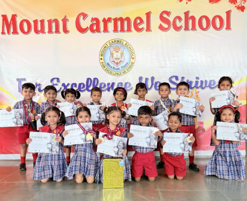 The Rangotsav Celebration, a National-Level Art Competition, was organized for the Pre-Primary section at Mount Carmel School. The competition was open to all children, and a large number of students participated with great enthusiasm, showcasing their creativity and artistic talents. Mount Carmel School achieved outstanding success at the national level in various categories, including Colouring, Handwriting, Collage Making, and Finger and Thumb Painting. Among the participants, 24 children won gold medals, 16 secured silver medals, and 11 received bronze medals. The first prize winner was awarded a triangular cycle and a trophy, adding to the excitement of the event. The organizing committee appreciated and congratulated the school, students, and teachers for their hard work and dedication. Furthermore, several winners were selected to participate in the International Art Competition, bringing pride and recognition to the school.