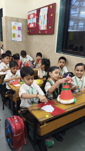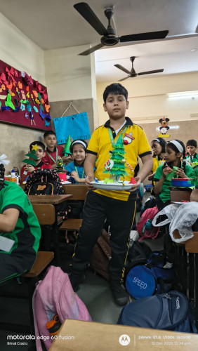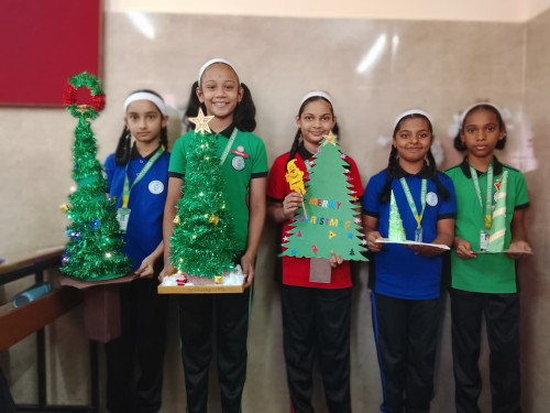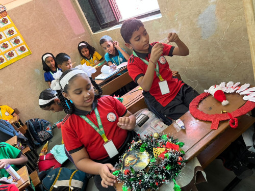 Mount Carmel School organized a Christmas Decoration Competition to celebrate the festive spirit and encourage creativity among students. The competition was conducted class-wise during the first two lectures of the school day. Different decoration activities were assigned to each standard to ensure age-appropriate participation. Standard I students made Santa hats, Standard II students prepared Christmas socks, Standard III students created Christmas wreaths, and Standard IV students decorated Christmas trees. Prior instructions were clearly given to all students. They were informed that no ready-made items were to be brought from home, and all decorations had to be prepared during the competition period itself. This helped promote originality and hands-on creativity. The decorations were judged based on neatness and creativity. Students participated enthusiastically and displayed great imagination and effort in their work. The judges’ decision was final, and three winners were selected from each class. After the competition, all the selected decorations were beautifully displayed and used for classroom decoration, adding a joyful and festive atmosphere to the school environment. The competition was a great success and helped students develop creativity, fine motor skills, and an appreciation for teamwork and festive traditions.