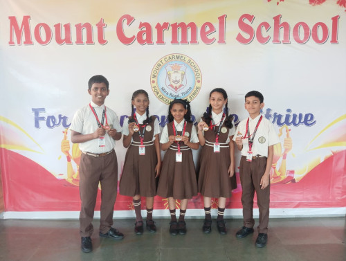 The SIP Arithmetic Genius Exam was conducted to encourage and develop the mathematical skills of primary school students. The competition aimed to enhance students logical thinking, problem-solving abilities, and speed in solving arithmetic problems while promoting interest and confidence in mathematics. The first round of the exam was successfully conducted at Mount Carmel School for students from Standard I to V. The students participated enthusiastically and displayed excellent mathematical abilities. Based on their performance, 515 students were selected for the second round. Among them, 79 students from Class I, 85 from Class II, 78 from Class III, 69 from Class IV, and 57 from Class V attended Round 2. Several students brought laurels to the school by securing Gold Medals in Round 2 of the Arithmetic Genius Competition. The winners were: Grade I – Navish Jaiswal, Riddhi Patil, Nevyn Fernandes, Vidhi Mishra, Vivika Poddar; Grade II – Hamdan Khan, Rigved Shetty, Rebina; Grade III – Bhavya Mistry, Kiaara Pandey, Sachit Mistry; Grade IV – Smit Chavan, Ayaan Khan, Shriyani Poojari; Grade V – Lekha Agedkar, Aafiya Mhate, Swara Kamble, Pranamy Shinde, Vihhan Khade. A special mention goes to Amaira Adoni from Grade IV, who cleared the third round and received a cash prize of ₹10,000 along with a trophy and certificate. The exam proved to be an enriching experience, helping students build confidence and develop a greater interest in mathematics.