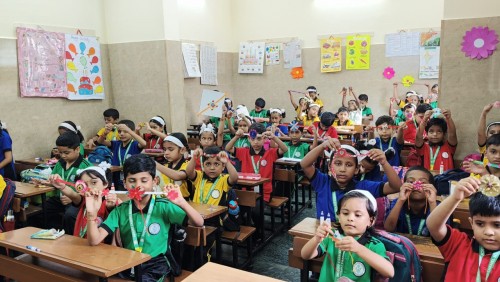 The Rakhi Making Competition for students of Std. I to IV was held on 11th August 2025, during the 1st and 2nd periods. The event was originally scheduled for 8th August 2025, but was postponed owing to a holiday on account of Narali Poornima. The theme for the competition was Eco-friendly Rakhi, encouraging children to showcase their creativity using natural and sustainable materials. Participation was made compulsory for all students, ensuring enthusiastic involvement across all divisions. Students came prepared with decorative materials brought from home, such as flowers, pulses, grains, leaves, nut shells, ribbons, and glue. They were instructed to avoid scissors by bringing pre-cut materials. Each rakhi had to be crafted in proportion to the wrist and include a dori for tying. The classrooms were filled with excitement as children set to work with great enthusiasm. Teachers guided and observed the process, monitoring the choice of materials, creativity, and presentation. The rakhis, once completed, were beautifully displayed in the classrooms. Teachers also explained the significance of Raksha Bandhan, highlighting the sacred bond of love and protection between brothers and sisters. The winners were selected on the basis of creativity, material used, overall presentation, and effort put in. Three winners from each division were announced on the same day through the school app. Photographs of the event were also taken to capture the joyful moments. The competition not only celebrated the festival of Raksha Bandhan but also instilled in students the values of sustainability, creativity, and cultural tradition.