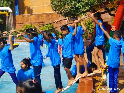 Our school picnic was organised for Children’s Day at Tikuji-ni-Wadi, Thane. A few buses were organised for picnic. Finally, the time came to leave. On the way, it was fun watching the mountains pass by—covered with beautiful green trees that carry hope and faith within them to stand strong despite the air and noise pollution on Ghodbunder Road. Soon, we finally reached our destination. After checking in, the fun truly began. We had our breakfast and headed out to see the beauty of Tikuji-ni-Wadi. The pools, the slides, and the rain dance were all the fun we all needed. Soon it was lunchtime. And after that, the real adventure began at the amusement park. Our first ride was the Toy Train—where all sat and Enjoyed a lot. Our second adventure was the Elephant Ride—those tiny elephant seats taking us gently up and down in the air were surprisingly so much fun. Our third was the Spinning Coaster—, that coaster was dangerous but enjoyable too! We tied our seatbelts and it began. The way all screamed… Students will never forget those precious moments. Up, down, zigzag—but all fun. Our fourth adventure was the Dashing Cars—all students were scared at the start, but soon it became exciting. Our fifth and last ride was the Cup and saucer ride all students were enjoying like anything. After that, it was time to relax, and soon we began our journey back to school with heavy hearts and pockets full of memories—memories that we will cherish later. Hereby in conclusion, one can say that it was fun and enjoyment at TIKUJI-NI-WADI on Children’s Day.